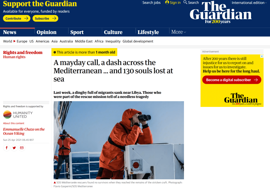 On April 21st, 2021, the Search & Rescue team aboard the Ocean Viking raced through a storm to try and save some 130 people on a dinghy boat who had called for help numerous times, to no avail. My report for The Guardian: